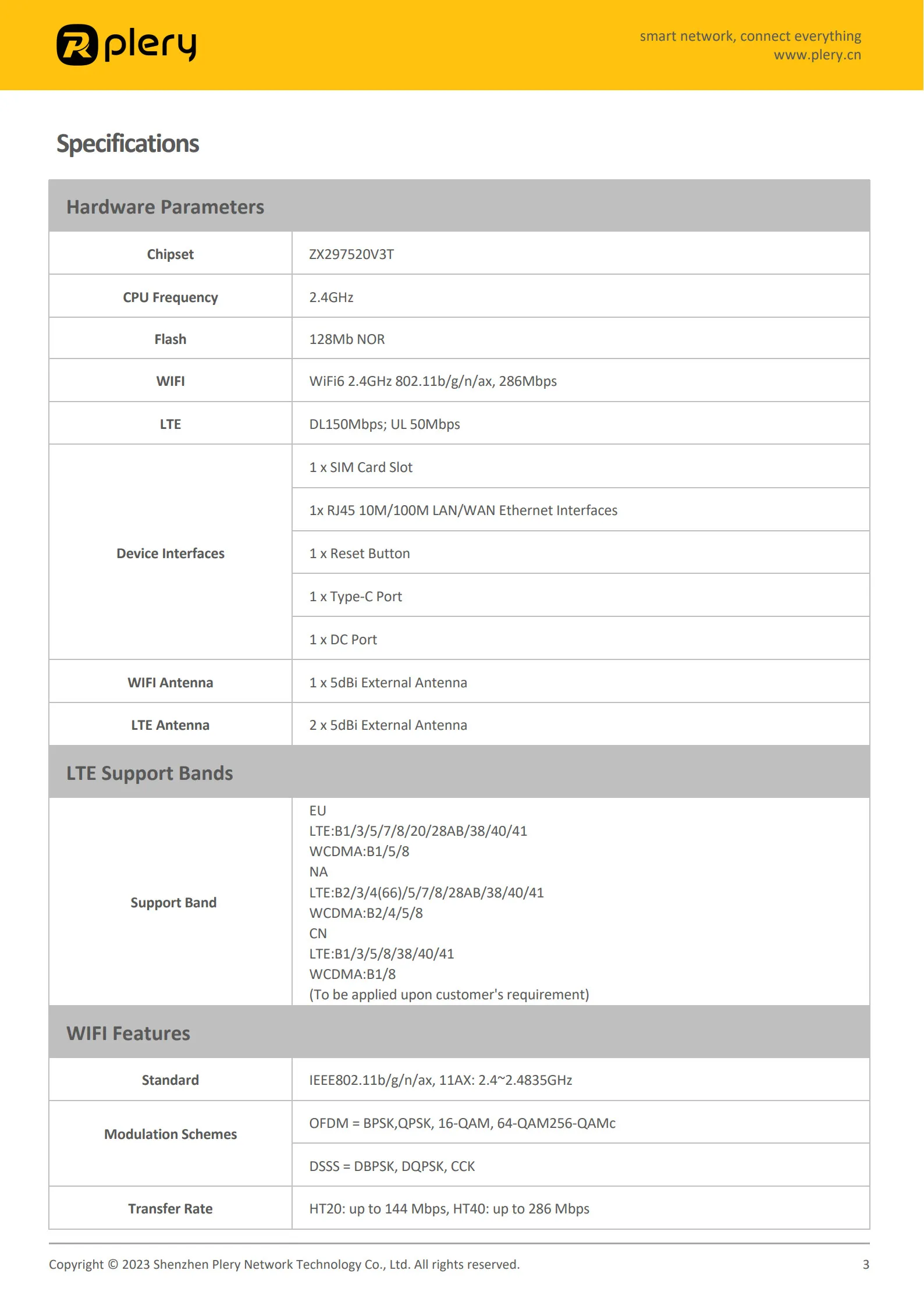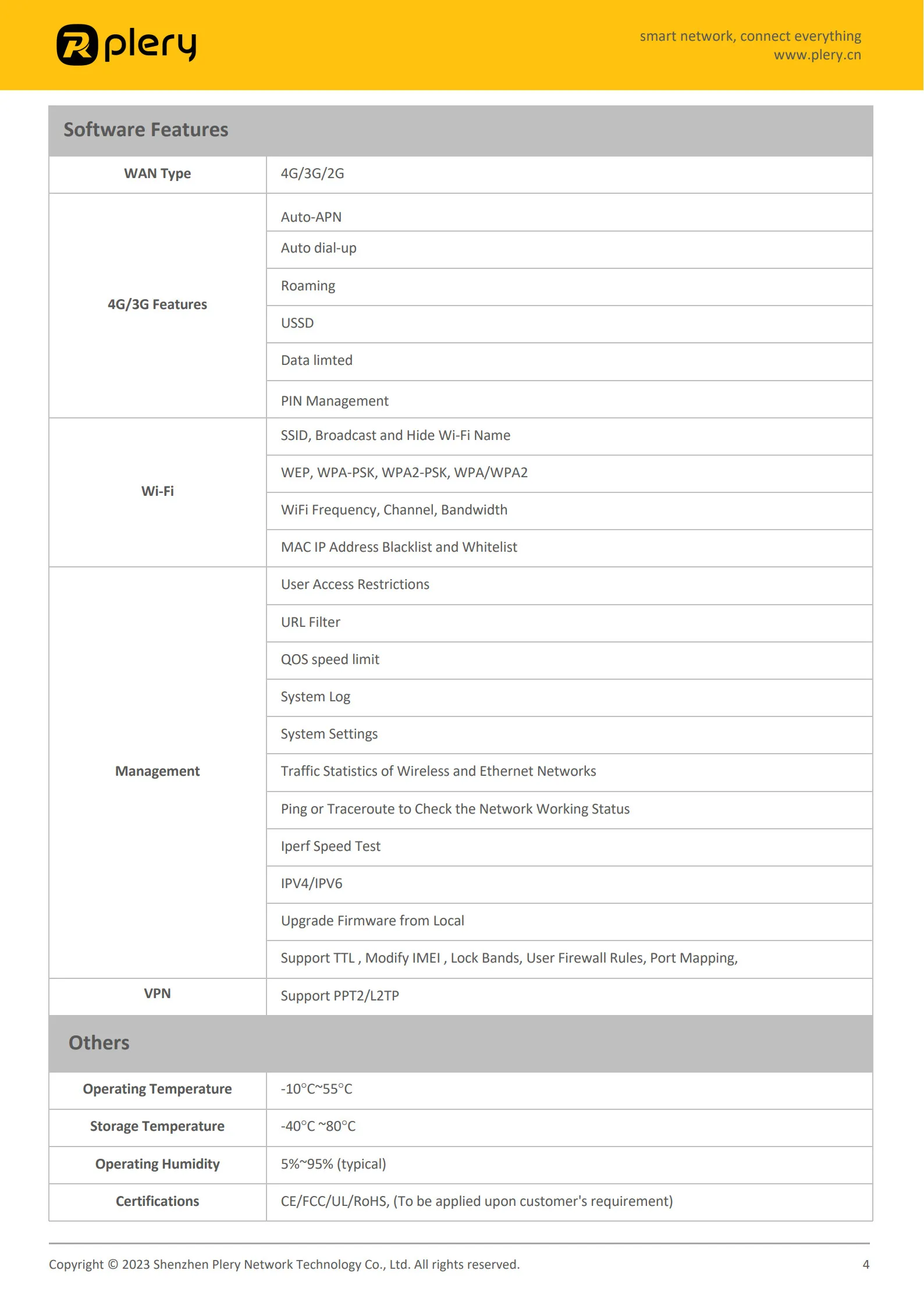 The Plery" R802 4G Router is a high performance network device which capable of providing high-speedInternet connection via 4G wireless networks. it has a built-in 4G LTE modem that can receive and transmitdata, meanwhile, forwarding the signal via Wi-Fi tech to surrounding devices such as smartphones, tabletsand laptops.